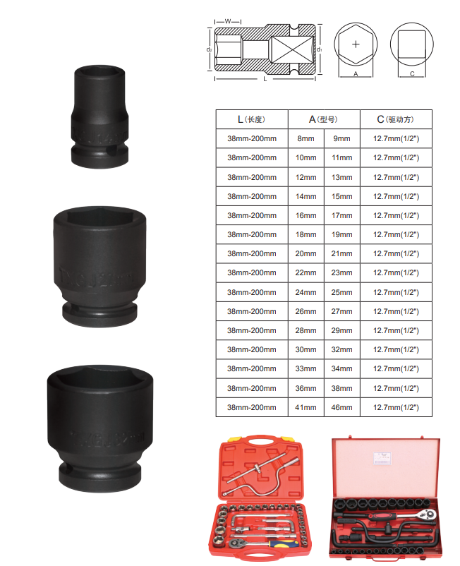 • 12.7mm(1/2)手動、風(fēng)動套筒