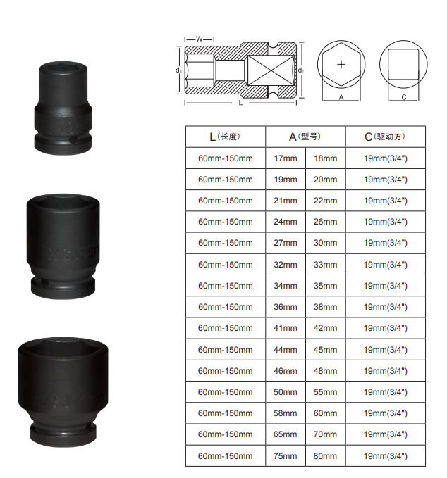 • 19mm(3/4)工業(yè)級手動風動套筒